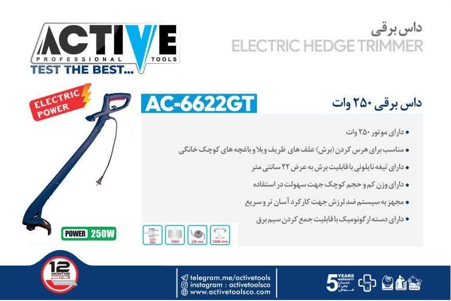 داس برقی 250 وات اکتیو تولز AC-6622GT