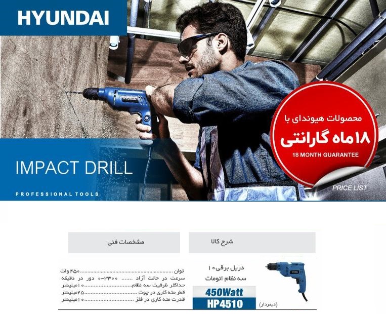 دریل 10 برقی اتومات 450 وات (دیمردار) هیوندا HP 4510