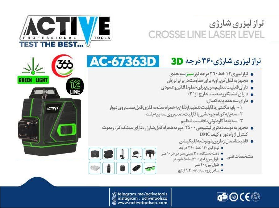 تراز لیزری شارژی 360 درجه سه بعدی اکتیو تولز AC-67363D
