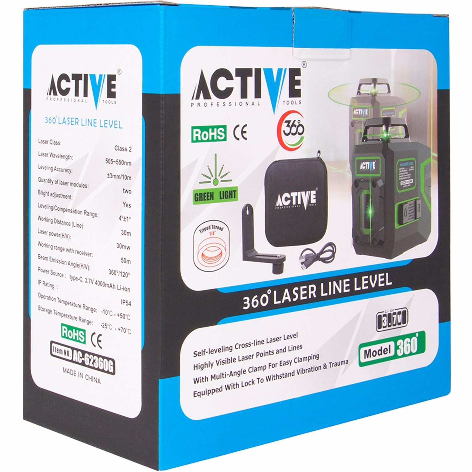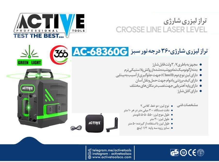تراز لیزری شارژی 360 درجه نور سبز اکتیو تولز AC-68360G