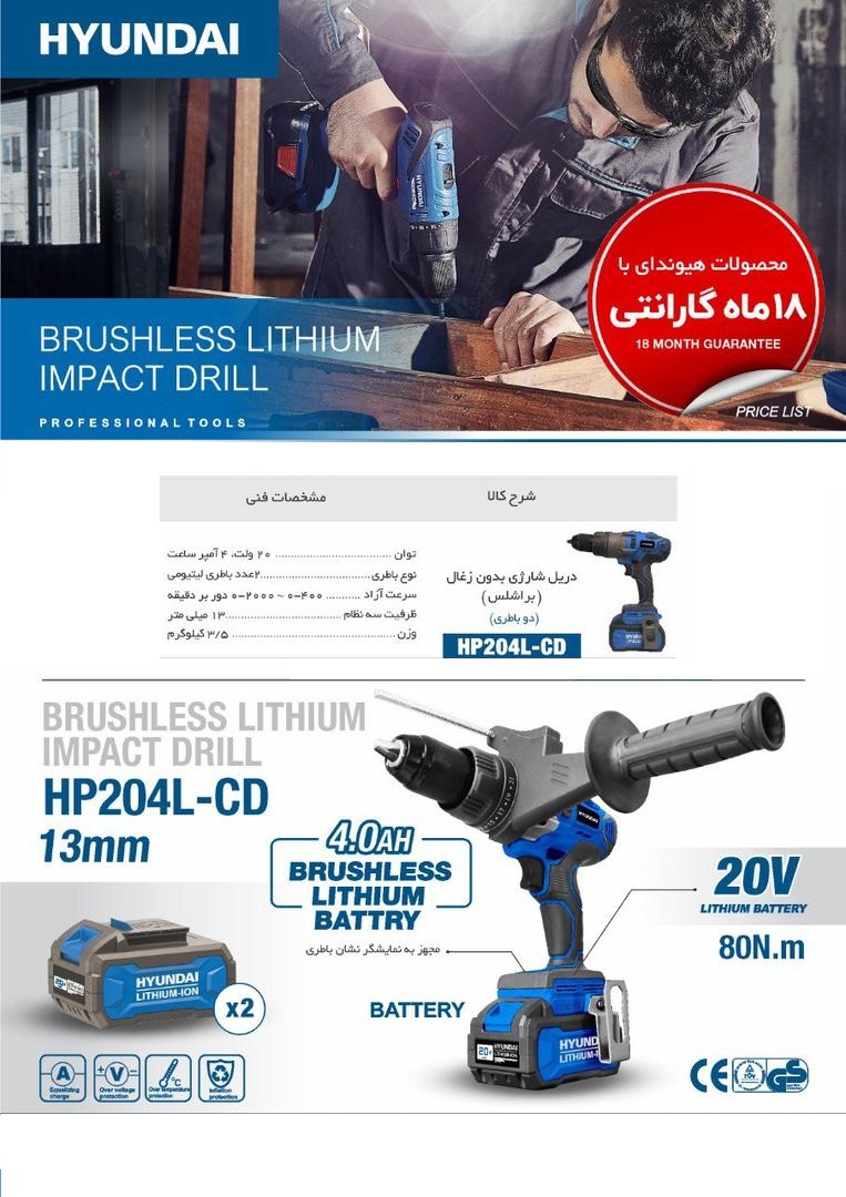 دریل 13 شارژی براش لس هیوندا HP-204L-CD