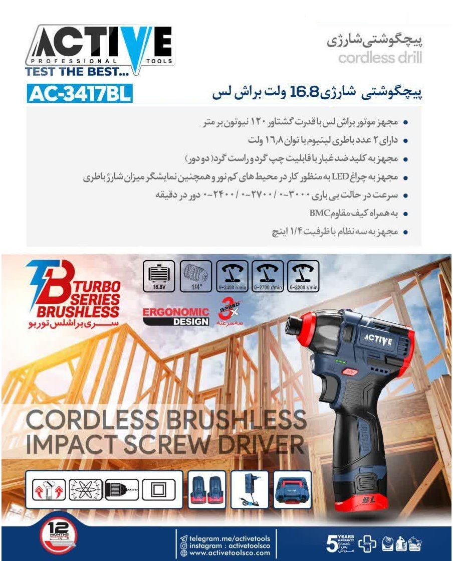 پیچ گوشتی شارژی 16/8 ولت براش لس اکتیو تولز AC-3417BL