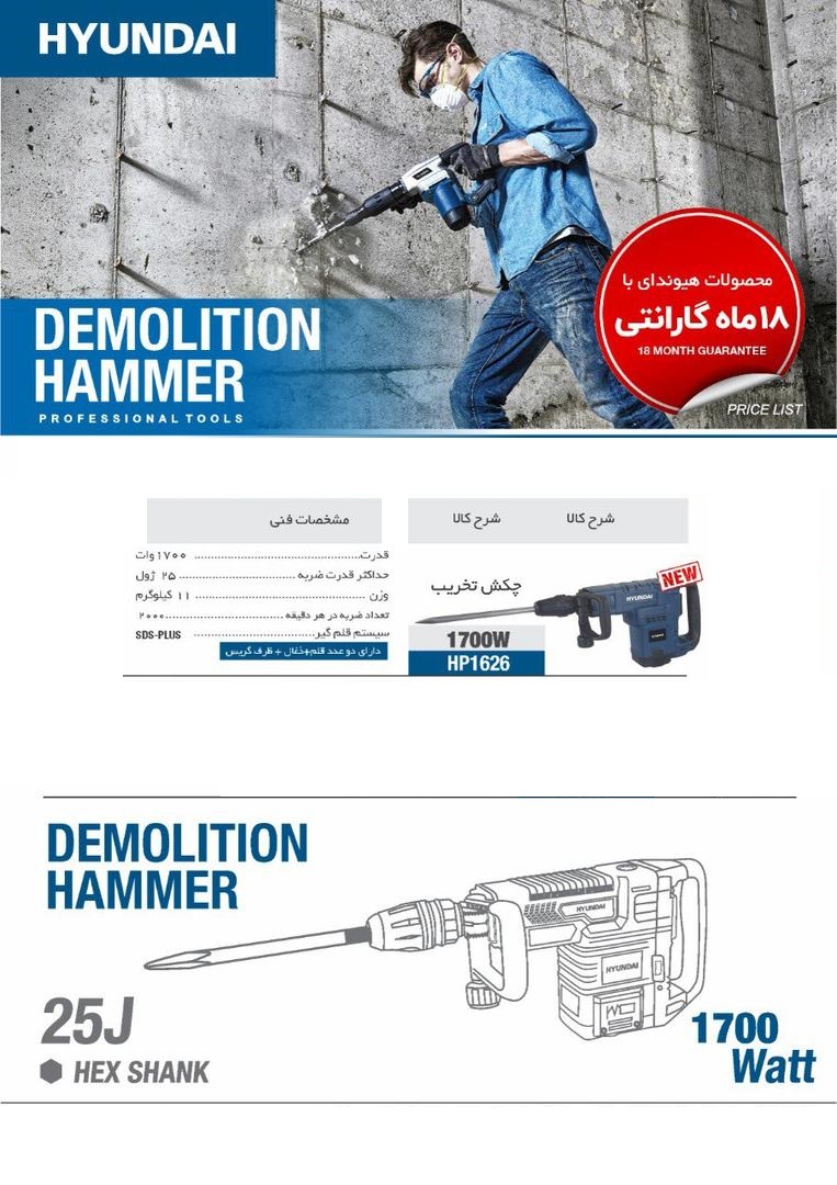 چکش تخریب 11 کیلویی 1700 وات هیوندا HP 1626