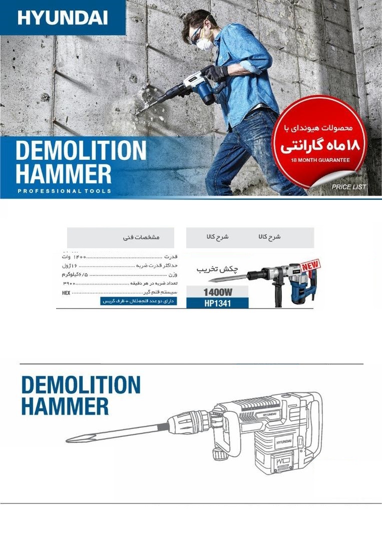 چکش تخریب 6/5 کیلویی 1400 وات هیوندا HP 1341